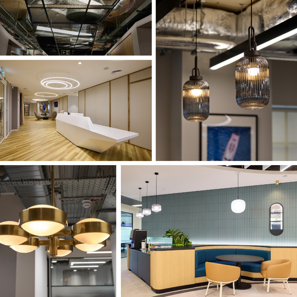 Good lighting makes all the difference when it comes to boosting staff morale and creating environments that encourage effective working. Lighting is a feature; it enhances and uplifts the overall design. Different coloured lights create different moods; you can use this to create comfort areas or more focused zones. Reducing glare and calming shadows can have a positive effect on workplace ergonomics. Making sustainable lighting choices can help you reach your ESG goals during your workplace design and build project.” Fernanda Said, Senior Project Designer.