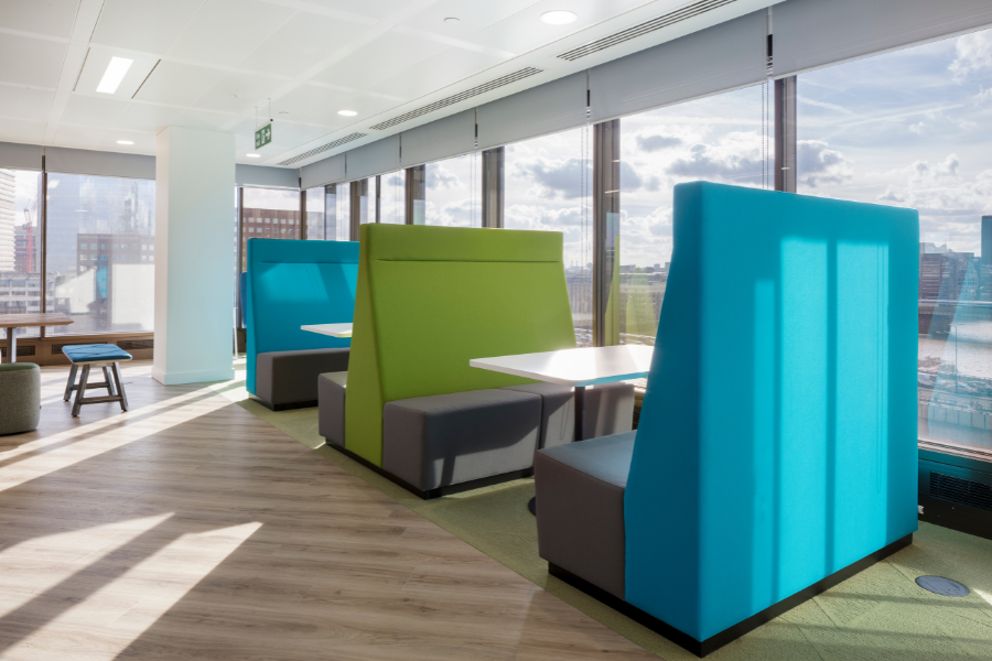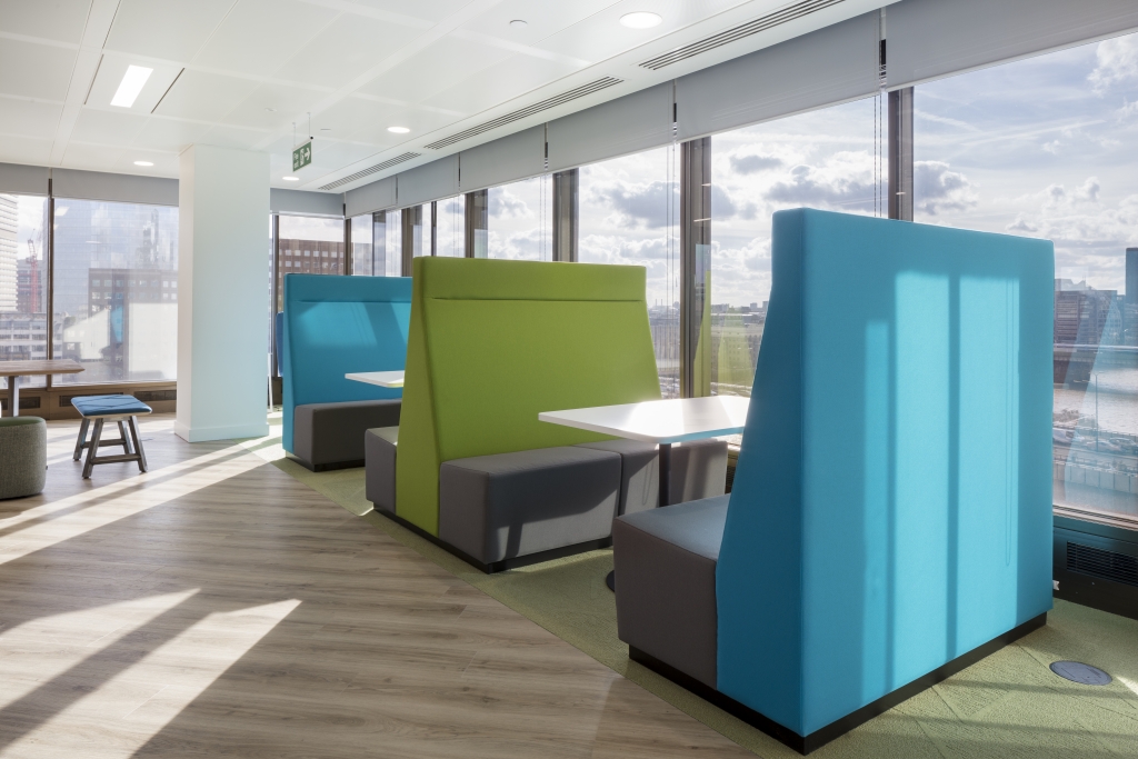 The design included a suite of meeting rooms including a large boardroom, a flexible meeting space with a bi-fold door enabling it to become two small spaces and several additional meeting rooms. Throughout the main open plan, there are spaces to collaborate and have informal meetings including an alcove fitted with a large soft seating area and laptop tables. With team wellbeing at the centre of the design decisions, each workstation included sit-stand desks. Hidden from view there’s extensive acoustic work to provide confidential cellular spaces and a new fresh air system.