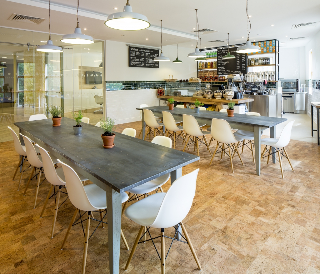 A design solution inspired by contemporary catering and leisure environments was devised. It was one which reflected materials, settings and cues seen rarely in traditional corporate environments. The deconstruction of bland generic office space began.